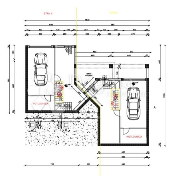 -SUTEREN; garaža sa kotlovnicom i prostorom sa stepeništem,