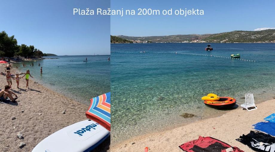 Obližnja plaža Ražanj je udaljena 200m i na kojoj gužvi nema ni na vrhuncu sezone, a centar Ražnja s 5 restorana i 2 trgovine je udaljen 4 min laganog hoda bez uspona.
