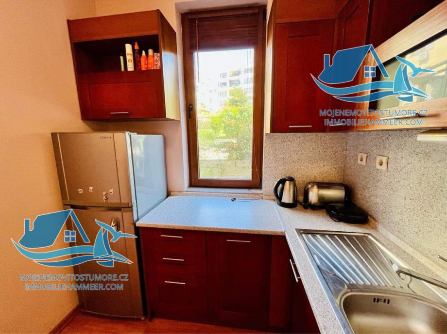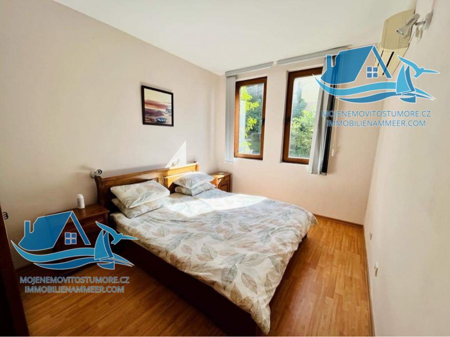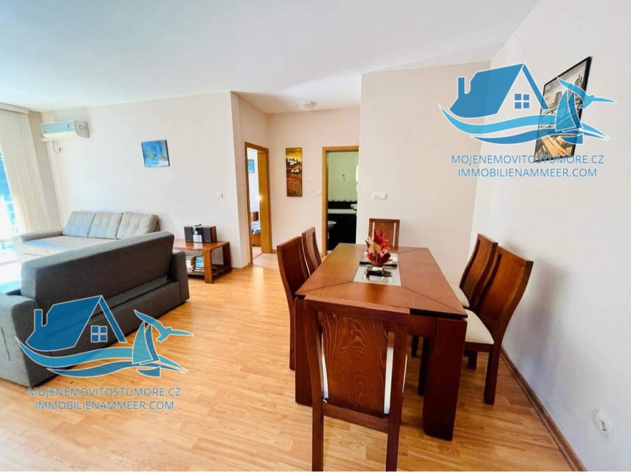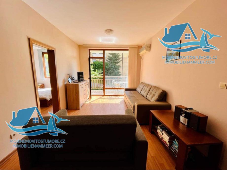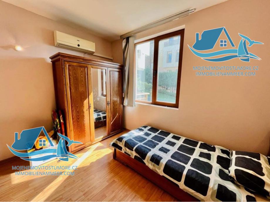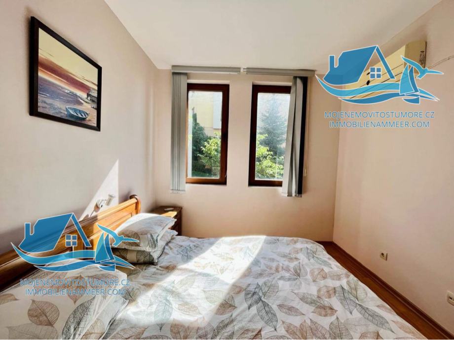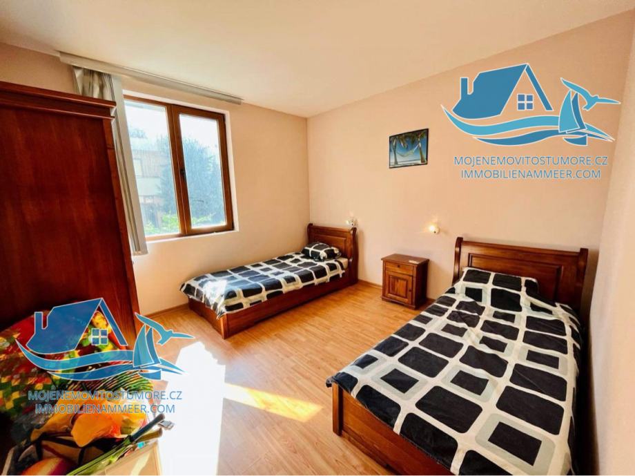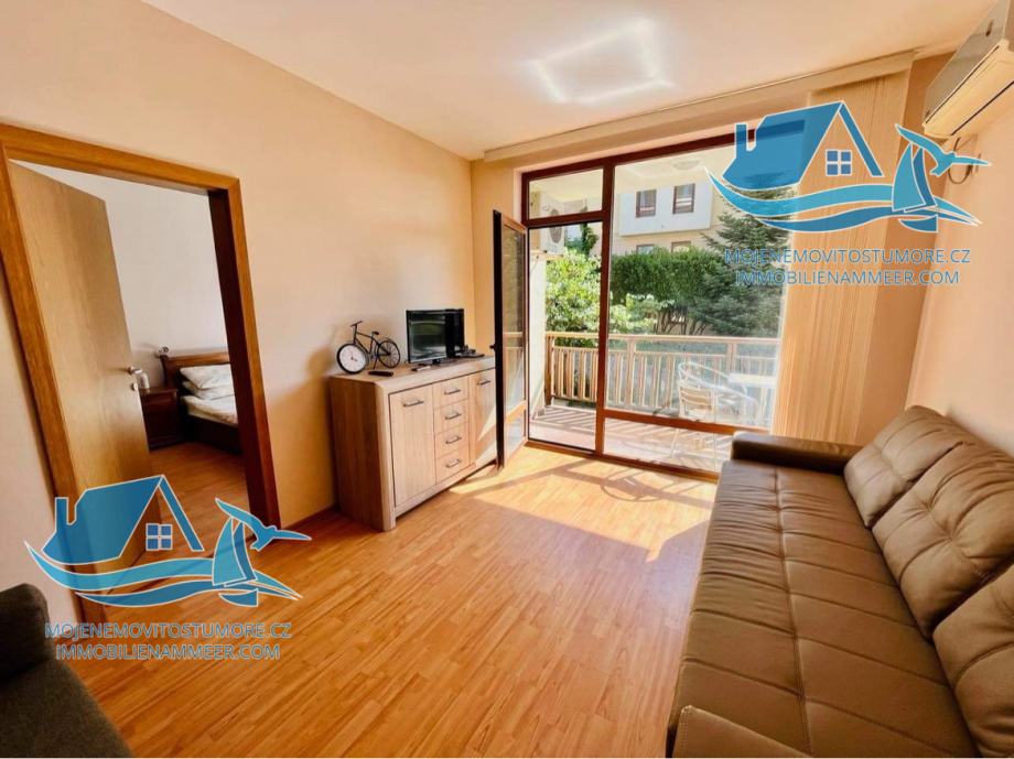 The complex in which the apartment is situated is located just 30 meters from the beach and is one of the best complexes on the Bulgarian coast. A wonderful combination of mountains, sea and beautiful nature. The complex is located in the first line, has a huge and perfectly maintained territory, located on the southern slope of the Black Sea coast overlooking the ancient town of Nessebar. Just a few minutes away from the center of Sveti Vlas, an awesome oasis, naturally inscribed in the natural landscape. The complex is in year-round operations.