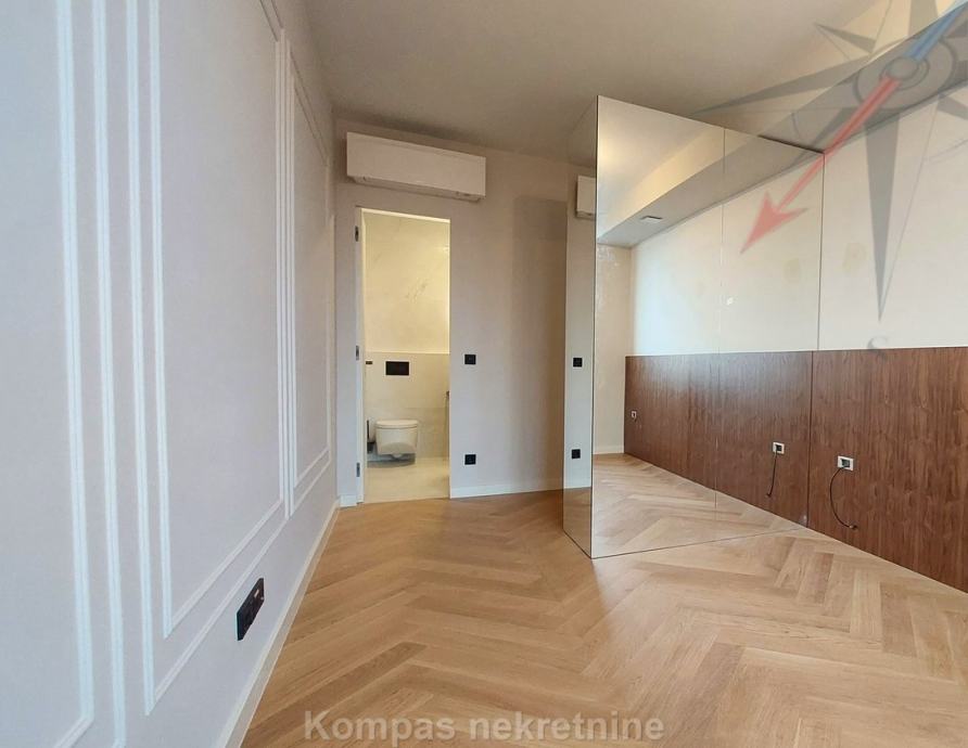 Apartment equipment: security-fireproof entrance door, control of shutters via central control system, underfloor heating, cooling via high-end intelligent split air conditioning system DAIKIN Emura, optical internet, possibility to control intercom, lighting and shutters via application.