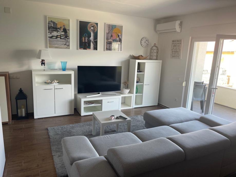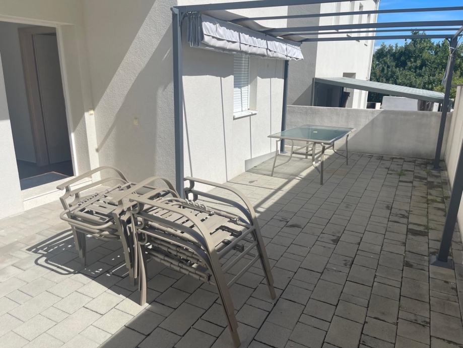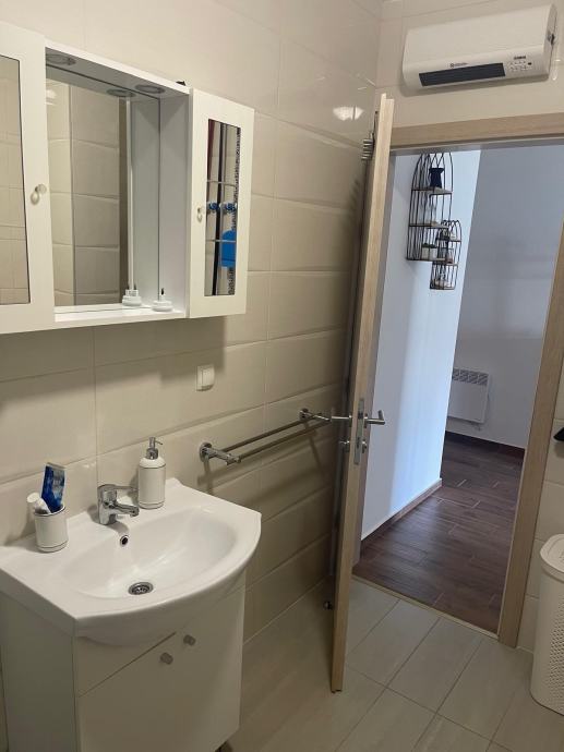 3 soban stan Vinjerac, Posedarje, novogradnja izuzetno kvalitetne gradnje, potpuno i moderno namješten. Stan se sastoji od dnevne sobe, kupaonice s wc- om, dvije spavaće sobe, hodnika, terase i trijema ukupne neto korisne površine 67,24 m2. Sporedni dio čini parkirališno mjesto P3 neto korisne površine