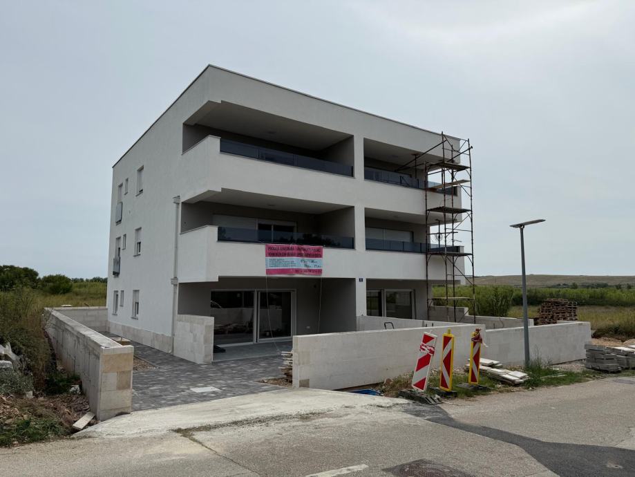 Im Erdgeschoss eines hochwertigen Neubaus mit nur sechs Wohnungen, in der Nähe des Strandes von St. Nikola in Povljana auf der Insel Pag, steht eine Dreizimmerwohnung im Grundriss mit S2 gekennzeichnet, gelb gestrichen mit einer Nettomietfläche von 77,74 m2 zum Verkauf.