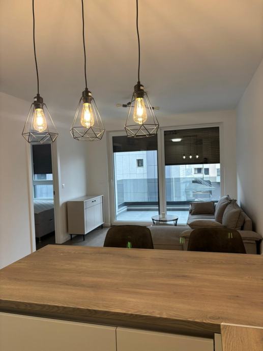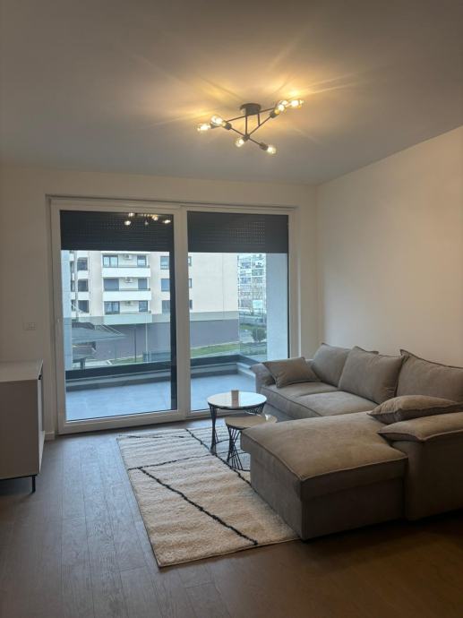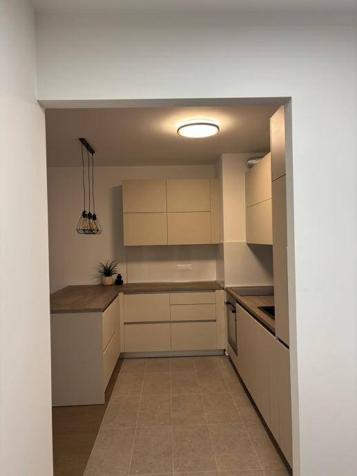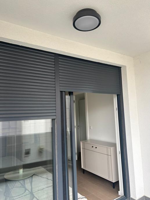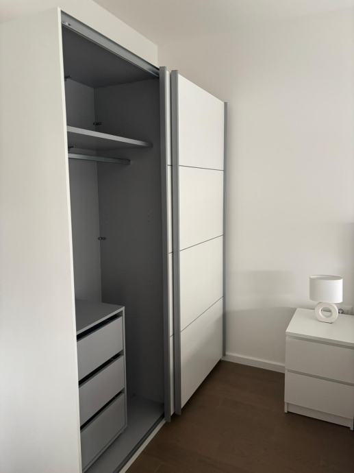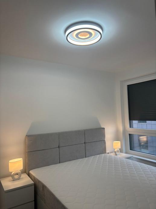Iznajmljuje se novogradnja, moderno uređen dvosobni stan površine 52 m², prvi najam, smješten na 2. katu zgrade s liftom, uz vanjsko parkirno mjesto s ulazno-izlaznom rampom.