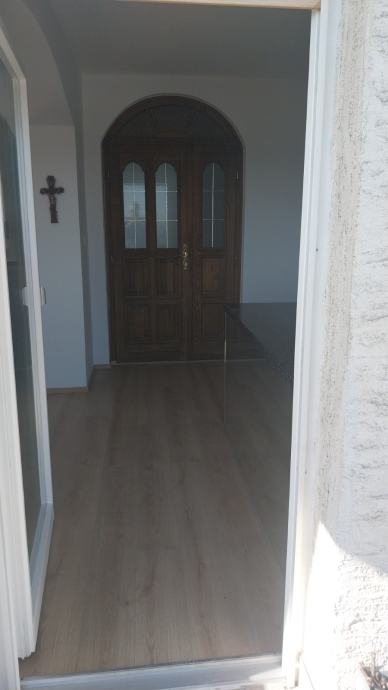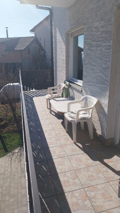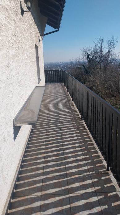 Trosoban stan od 85 m² neto površine smješten je na prvom katu dvo etagne kuće izgrađene 1985. godine. Stan je jednoetažan, a sa balkona se otvara široki pogled prema gradu i okolnom zelenilu - vidljivo i na fotografijama. Kuća stoji na mirnom položaju, okružena otvorenim prostorom i za velikim horizontom.