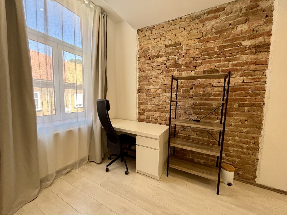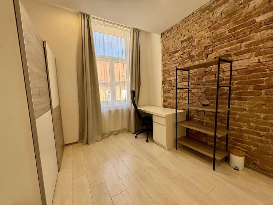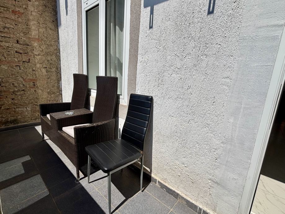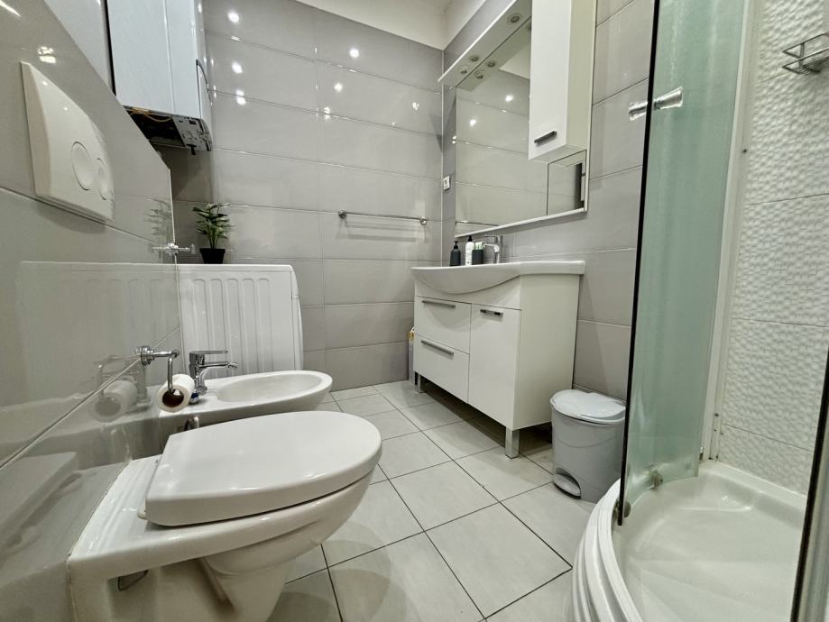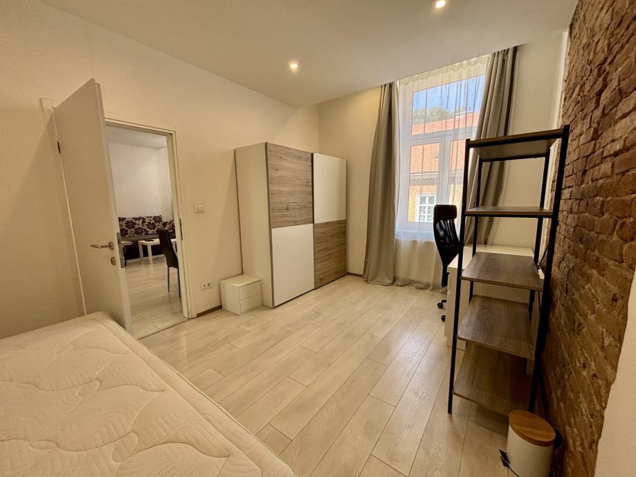 Unutrašnjost stana opremljena je kuhinjom s aparatima, perilicom posuđa, perilicom rublja, televizorom, krevetom i radnim stolom. Dodatnu funkcionalnost i sigurnost pružaju protuprovalna vrata, dok klimatizacija i centralno grijanje na plin jamče ugodnu temperaturu tijekom cijele godine. Stan se ističe i starogradskom arhitekturom, a pripada mu i balkon za opuštanje te podrum kao dodatni prostor za pohranu. Dostupna je i optička mreža za brzi internet.