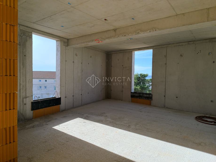 Ovaj elegantni stan odlikuje se modernom arhitekturom i visokim standardom gradnje. Smješten na mirnoj lokaciji, stan pruža lijep pogled na more, što ga čini idealnim za one koji cijene mir i prirodne ljepote. Stan je orijentiran prema zapadu, što osigurava obilje sunčeve svjetlosti tijekom dana.