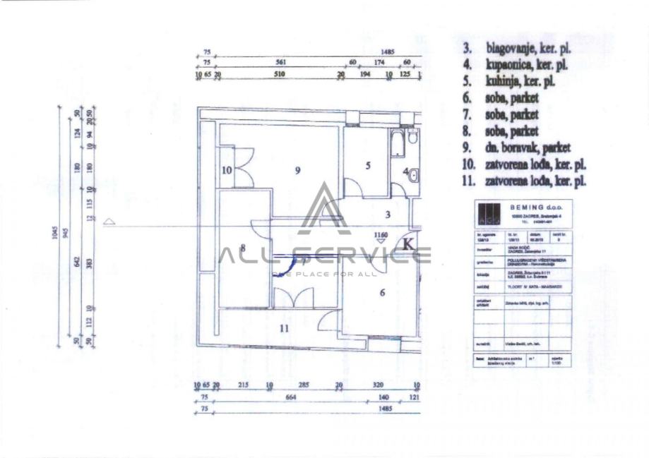 Stan se sastoji od 3 spavaće sobe, prostrane dvije lođe, od kojih svaka ima pripadajuće spremište, kupaonice, kuhinje, dnevnog boravka.
