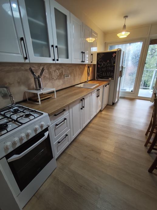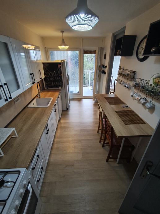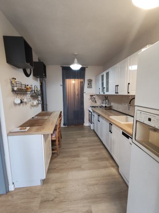 - kuhinje (kuhalište na gradski plin, veliki dvostruki frižider, perilica suđa, izlaz na balkon i smočnica)