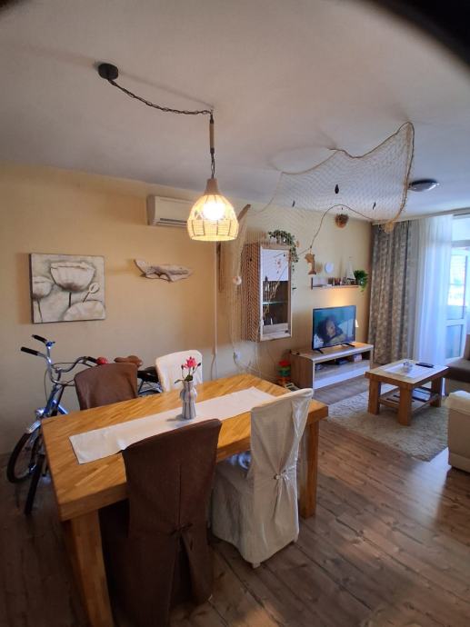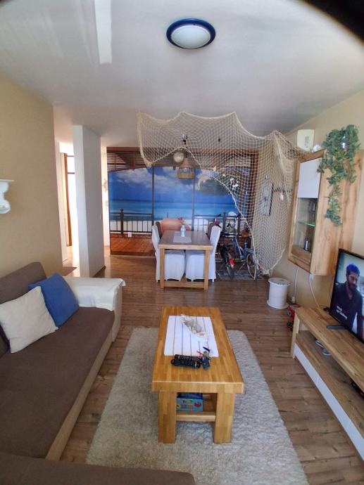 Prodaje se 3s stan na 1 katu, povrsine 62m2. Sadrzi: hodnik, 2 spavace, dnevni boravak, kuhinju i terasu. Prvi red do mora.
