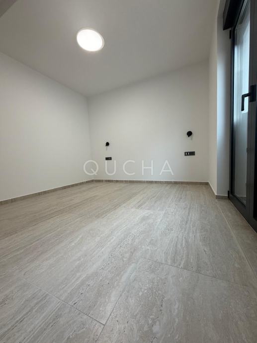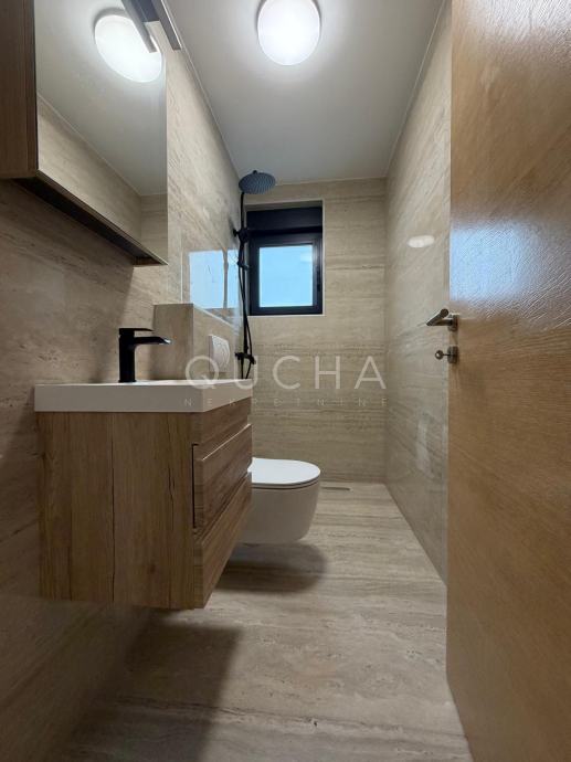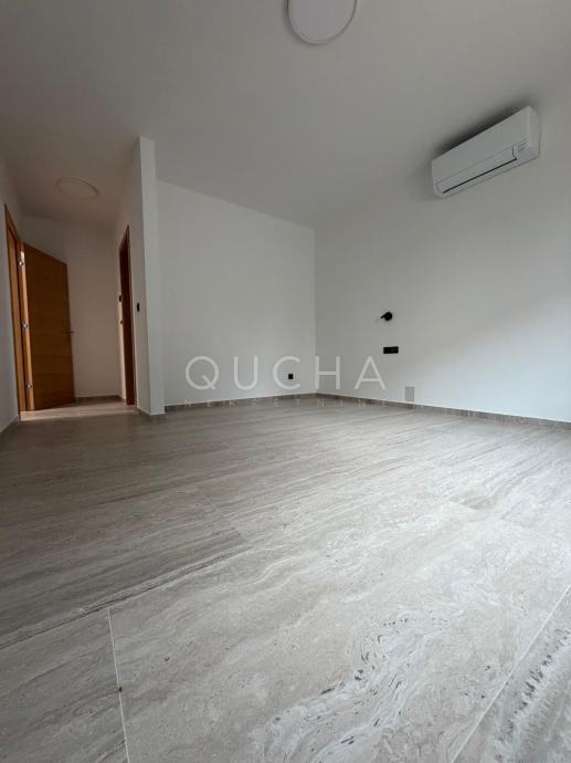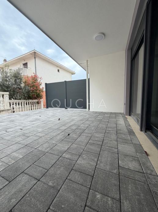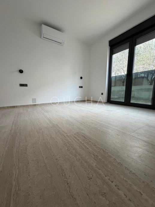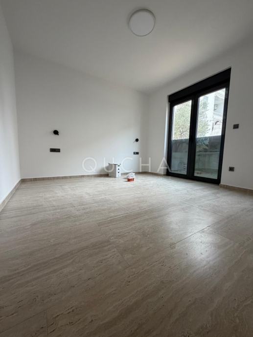 Nalazi se na svega 300 metara od mora i u prizemlju zgrade (ulaz lijevo), od ukupno dva kata zgrade i četiri stambene jedinice.