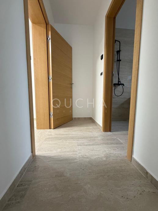 Sami raspored i orijentacija stana s velikim staklenim stijenama, ispunjavaju stan s puno prirodne svjetlosti. Okružen je zelenilom i nalazi se u mirnom dijelu Vodica.