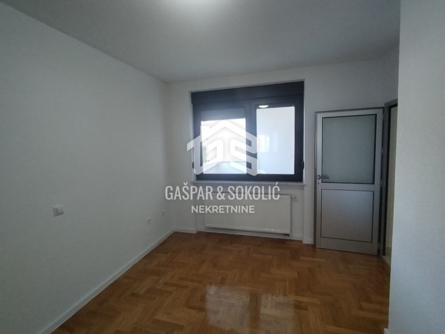 Stan u prizemlju površine je 157,16m2 neto (površina bez koeficijenata iznosi 219,18m2). Stan se sastoji od 3 odvojene cjeline koje predstavljaju poslovnu priliku i dodatnu vrijednost. Stan je koncipiran kao prostran četverosobni stan koji se može koristiti za namjenu stanovanja, a može se koristiti jednim dijelom za stanovanje, a drugim kao poslovni prostor za tihu djelatnost (odvjetnički ured, računovodstvo i slično). U stan se može ući kroz dvoja ulazna vrata, pa je korištenje kao dvije nekretnine jednostavno izvedivo. Ulaz u drugi pripadak stana je iz stubišta - mala garsonijera sa kuhinjom i kupaonicom. Treći pripadak stana -spremište (u etažnom elaboratu) ulaz također iz stubišta, a može se koristiti kao mali poslovni prostor, s obzirom da ima prozore i balkon.