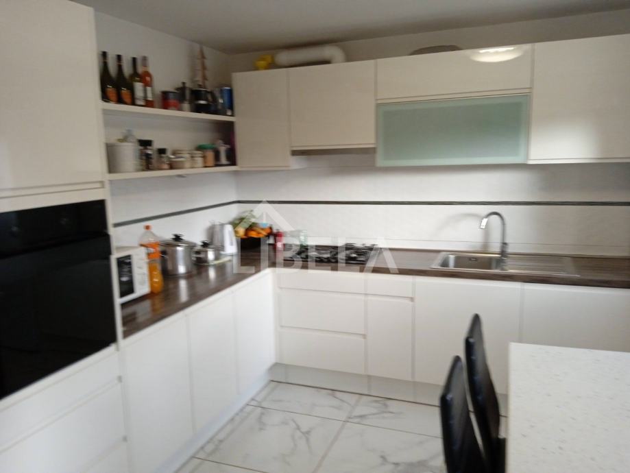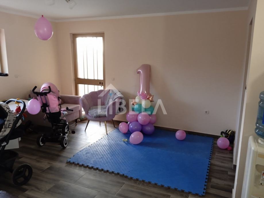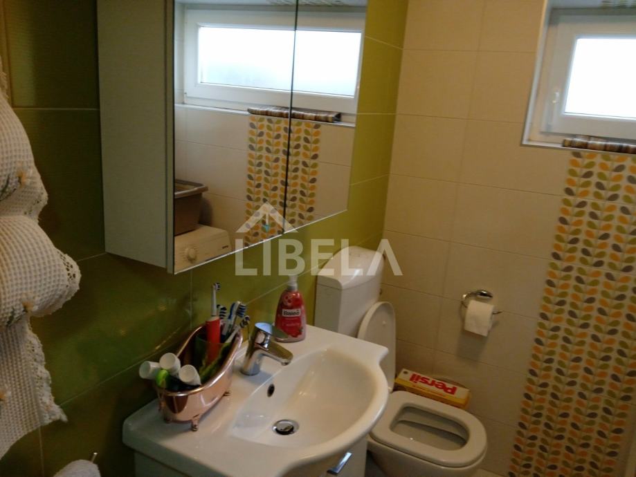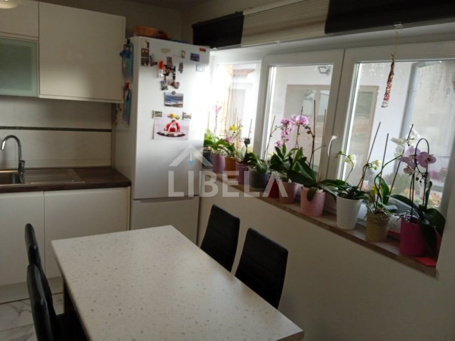 Stan okrenut ka jugu sa puno svijetla, površine 88 m2, nalazi se u prizemlju etažirane kuće sa tri stana. Pripada mu poseban prilaz autom do garaže i apartmana koji se nalaze u sklopu okućnice.