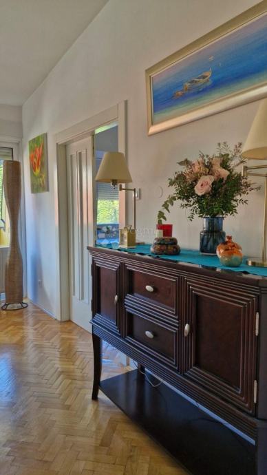 Stan je vrlo funkcionalnog rasporeda i odiše prostranošću te prirodnim svjetlom. Sastoji se od tri spavaće sobe, dnevnog boravka, kuhinje i dvije kupaonice, a posebnu vrijednost daju dva balkona s lijepim, otvorenim pogledom. Kompletna adaptacija stana, uključujući sve instalacije, provedena je 2016. godine, a prodaje se potpuno namješten, spreman za useljenje bez dodatnih ulaganja.