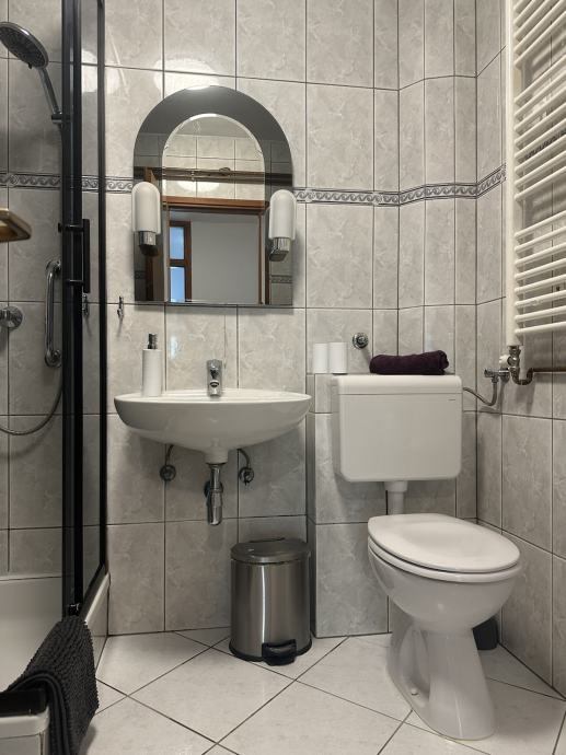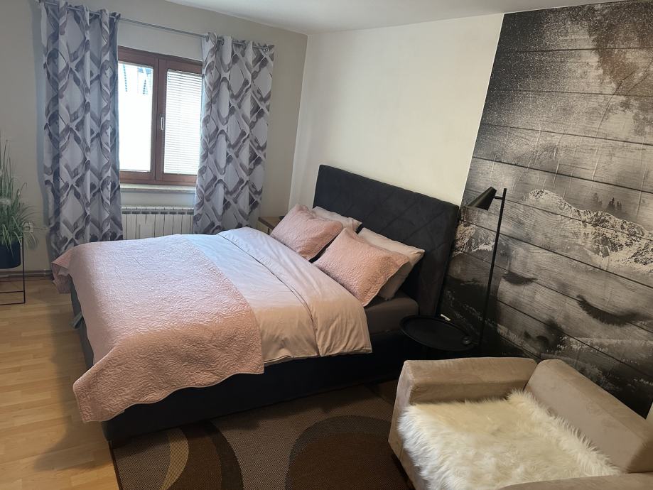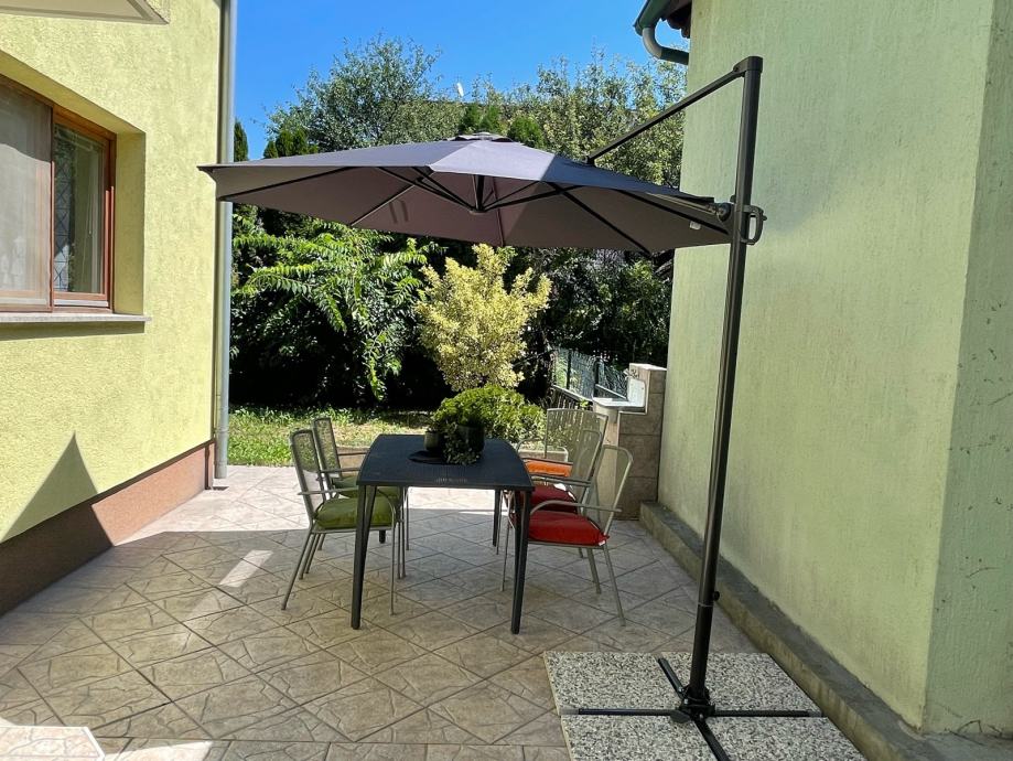 Cetverosobni stan moderno namjesten sa pripadajucim vrtom 200 m2 i 1.parkirno mjesto, dvoriste potpuno ogradjeno.