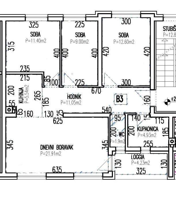 Stan 82,56m2 + 2 vpm, 6,26m2 obračunski, ukupna prodajna površina 88,82m2