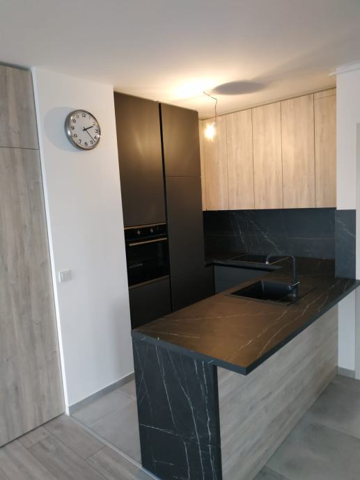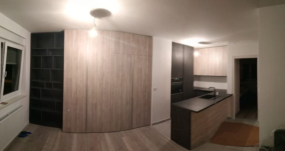 U stanu ostaje namještaj po mjeri: ormari u hodniku, dnevnom boravku, kuhinja sa svim aparatima, ormar roditeljska spavaća soba.