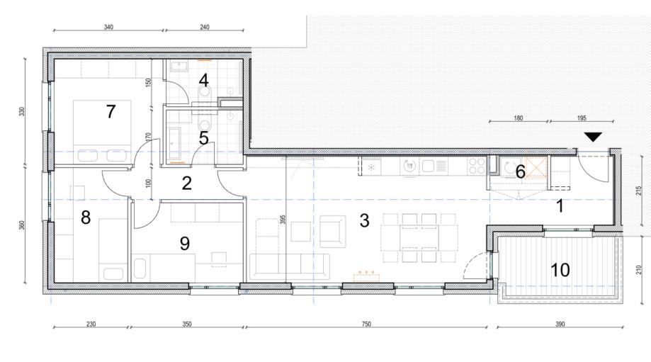 • Dnevni boravak + kuhinja i blagovaonica – 29,63 m²
