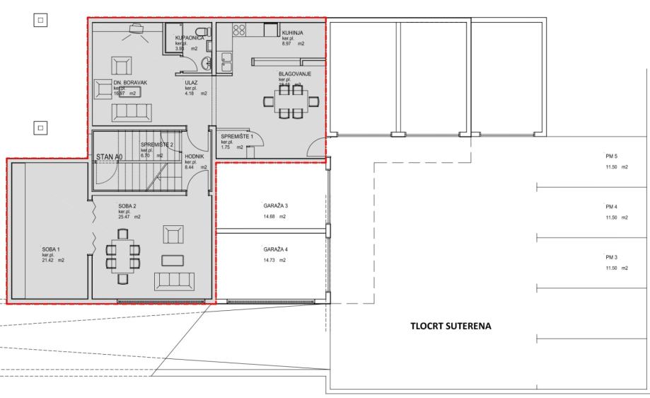 Prostor se sastoji od 4 prostorije, kuhinje, kupaonice, 2 spremišta a uz stan bi po dogovoru bilo moguće unajmiti 1 garažu i 1 vanjsko parkirno mjesto.
