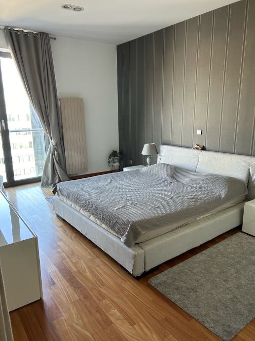 Luksuzan namješten 5 soban dvoetažni stan Radnička cesta, 190 m2 na petom i šestom katu stambene zgrade sa dva lifta. Video nadzor zgrade, video portafon.