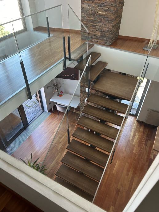 Gornja etaža se sastoji od velike spavaće sobe sa vlastitom kupaonicom, garderobe koja se po potrebi može prenamjeniti u sobu, dvije spavaće sobe, kupaonice, hodnika.