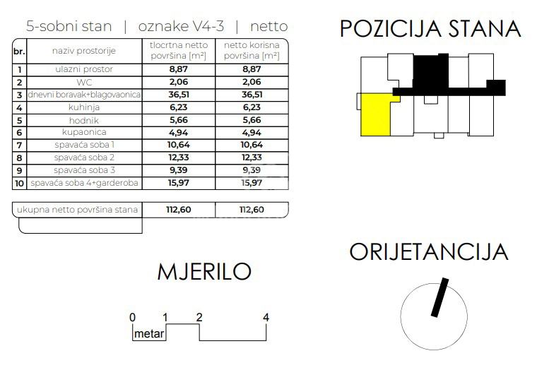 5 soban stan 112,60 m2 na 4. katu poslovno - stambene nekretnine, lift, vrhunski materijali, parking u podzemnoj garaži.