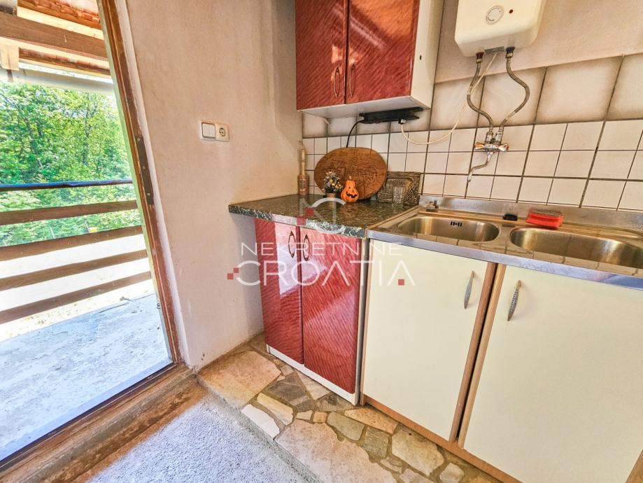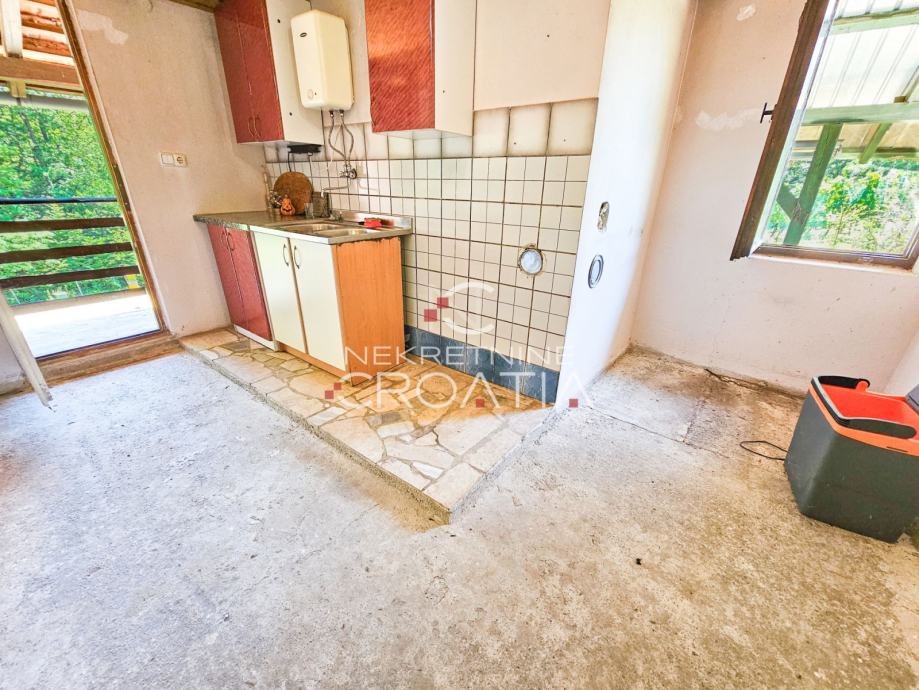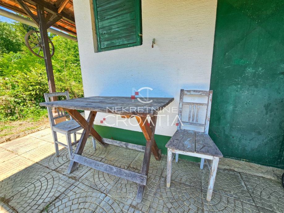 Priključak struje i vode, kanalizacija: septička, drvena vanjska stolarija.