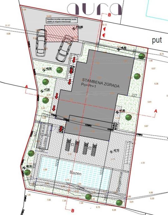 Planirana je gradnja nove zgrade stambene namjene, katnosti Po+Pr+K.