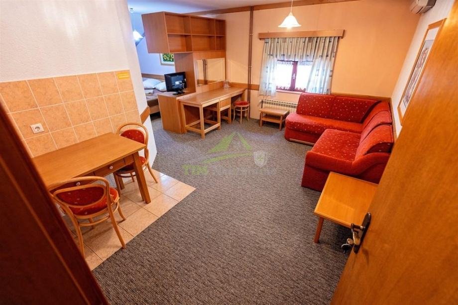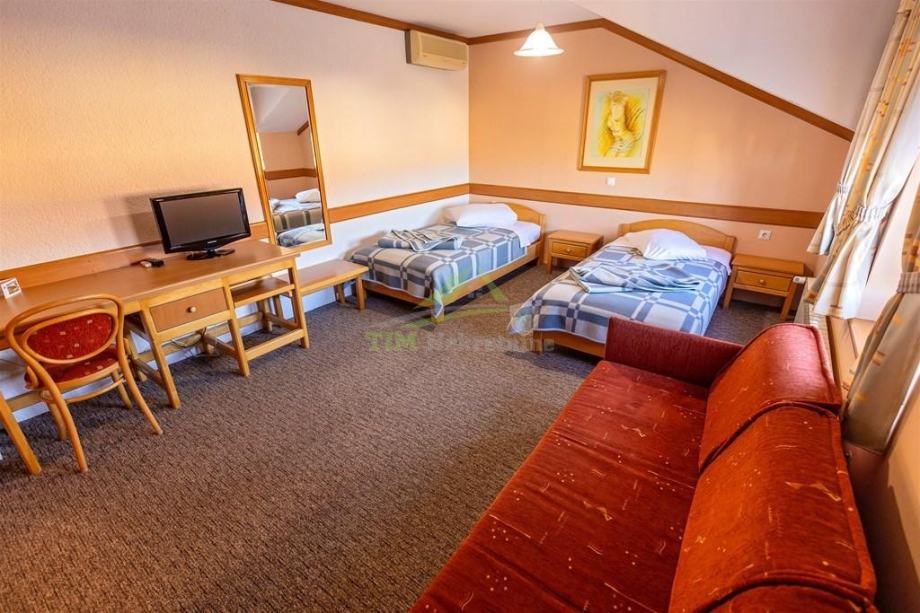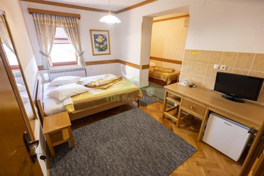 Poslovna zgrada tlocrtne površine 170 m2; na zemljištu ukupne površine 388 m2; smještena na vrlo frekventnoj lokaciji u samom centru grada Varaždina.Sastoji se od podruma; prizemlja; 1. kata te potkrovlja.Kompletna infrastruktura (struja, voda, plin, kanalizacija, telefon); plinsko centralno grijanje.U prizemlju se nalazi ugostiteljski objekat; dok se na prvom katu te potkrovlju nalaze 8 smještenih jedinica koji čine jedan dvosobni apartman, jedna garsonijera te šest komfornih soba svaka sa svojom kupaonicom.Uredna dokumentacija; objekt kompletno namješten te se kao takav i prodaje.Na dvorištu osiguran parking za 8 parkirnih mjesta.Objekat predstavlja savršenu priliku za one koji traže već uspostavljen posao u ugostiteljskom sektoru s puno potencijala sa daljni rast.