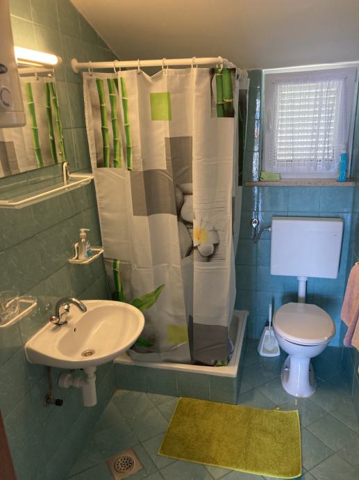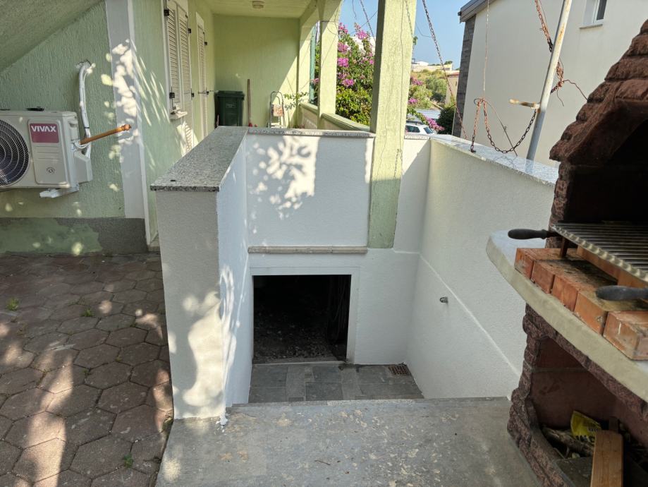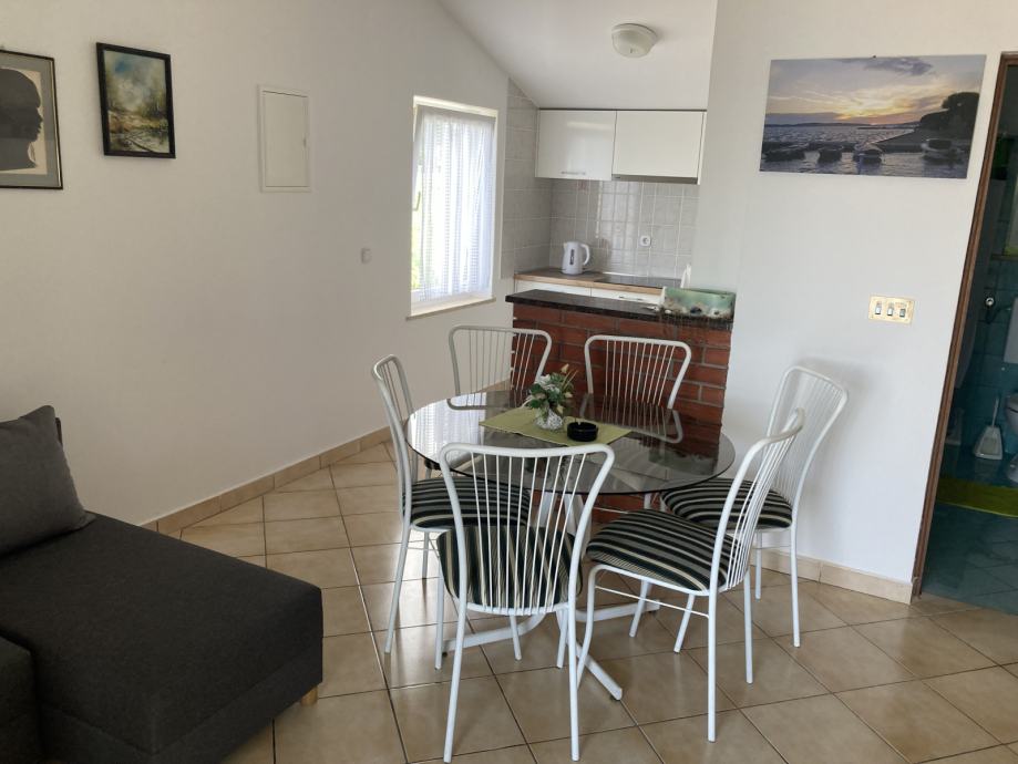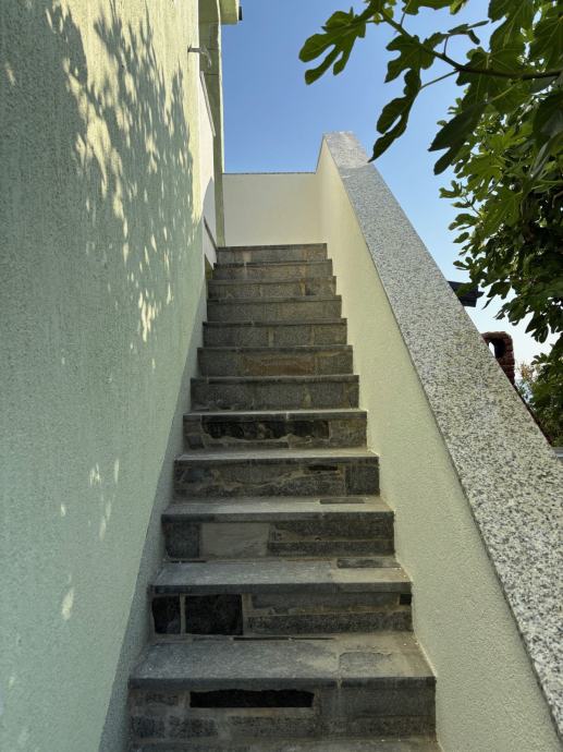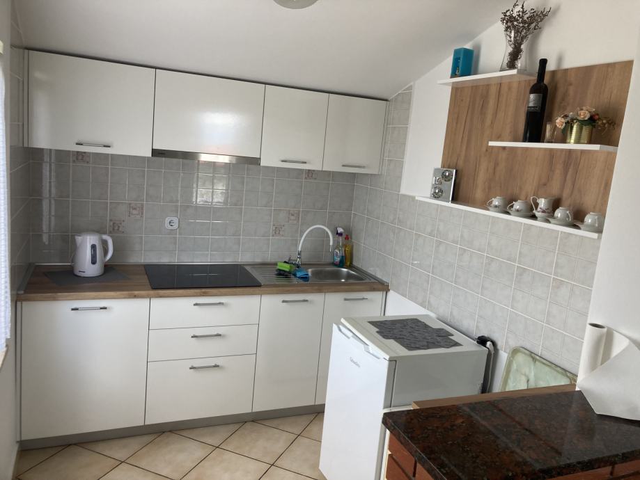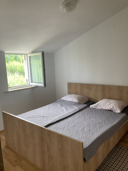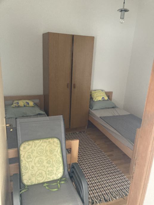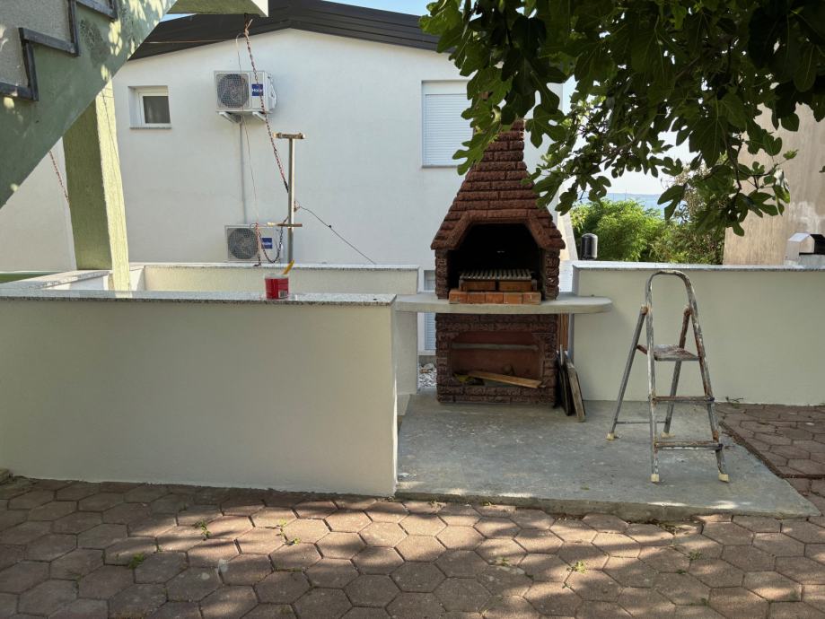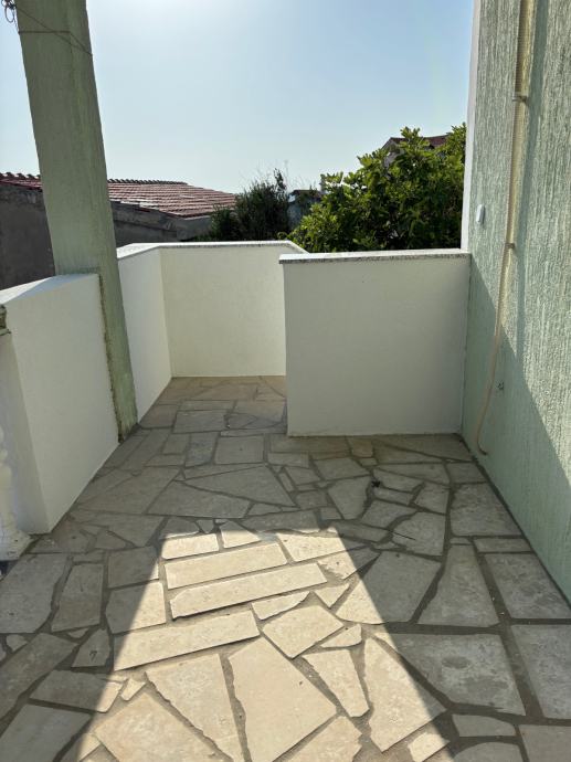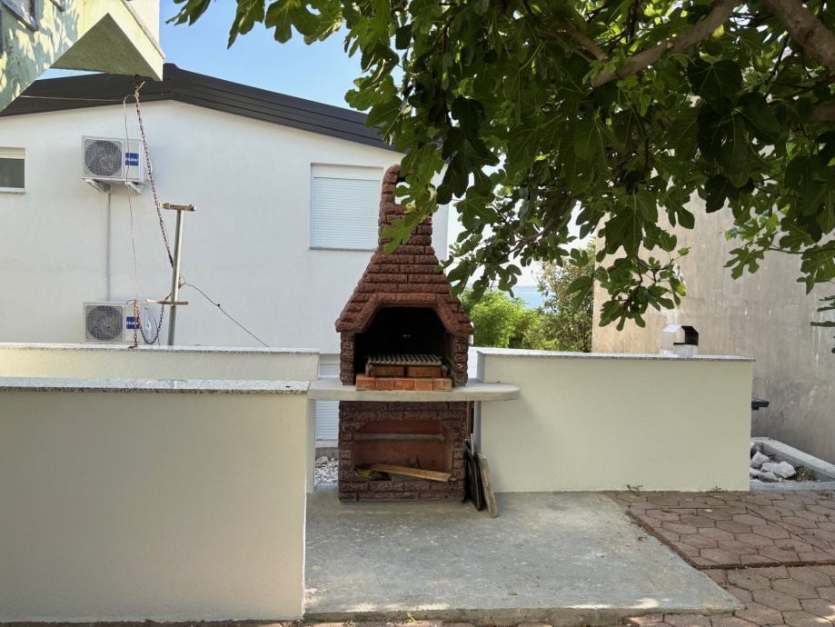 Vikendica se nalazi u mjestu Benići 1 km prije Paškog mosta od glavne ceste 50-ak m prema plaži.Vikendica udaljena od mora 100-injak metara.Plaža(pješčana) pogodna za djecu i odrasle.U okružje se nalazi dućan,dva kafića i restorani.Mjesto veoma ugodno i mirno za odmor.Prikladno za dvije obitelji zbog toga što su apartmani odvojeni ulazom i strujom.Dvorište dovoljno veliko za 3 automobila.Instaliran klima uređaj.Kuća također posjeduje podrum i vanjski zidani roštilj.Vlasnički papiri legalni...1/1,svaki apartman je 64m2 +terasa 2*8m16m2
