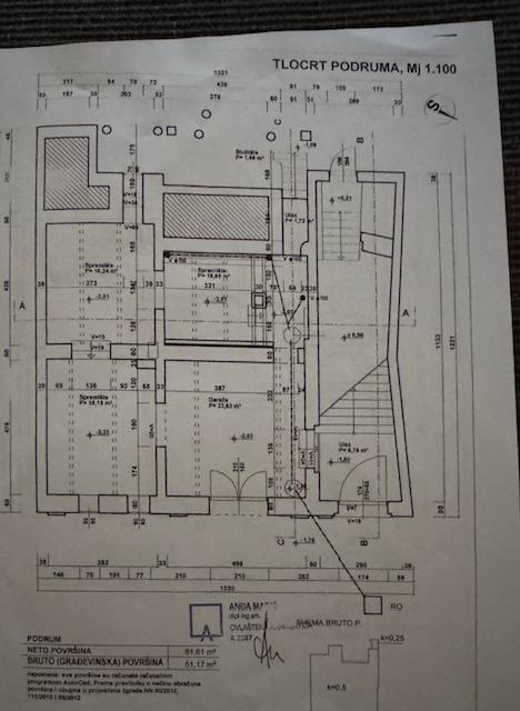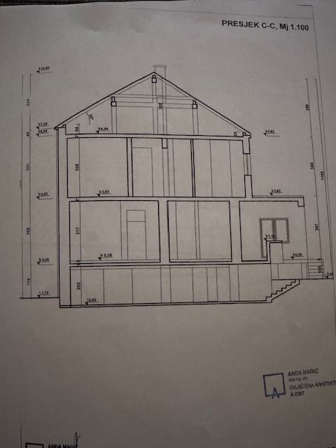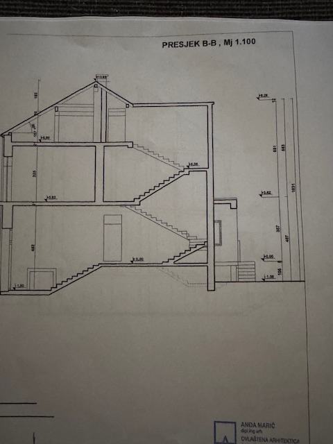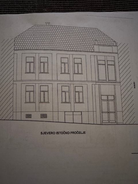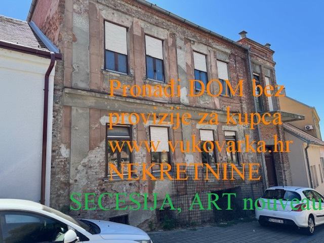 Stambena zgrada SECESIJA elegantna profinjenost zakrivljenih i ornamentalnost plošnih linija izgrađena 1929 godine a djelomično obnovljena putem obnove od RH 2010 godine. Na izuzetnoj lokaciji u centru Vukovara u maloj ulici na visini a udaljena cca 150 metara od Crkve sv. Filipa i Jakova i gimnazije, 5 minuta laganog hoda do pješačke zone i ušća Vuke u Dunav,...Ukupna veličina zgrade je 482,87 m2 od toga podrum s garažom na nacrtu može biti samo spremište jer rekonstrukcijom ulice je podignut nivo ceste i sad se ne može ući autom u garažu, tako da zbog visine ceste podrum od 78,05 m2 gubi stambenu namjenu i garažu i ostaje samo spremište. Druga stambena zgrada koja je udaljena 20 metara iste veličine je etažirana i ima 8 stanova tako da se i ova zgrada može unutarnjim uređenjem i etažirati na više stanova. Zgrada može biti hostel, prenoćište... ili po želji i potrebi. Prizemlje zgrade je veličine 135,86 koje se sastoji od 7 prostorija, terase prema dvorištu veličine 13,08m2. Ulaza od 6,76 m2 i stubišta od 23,42 m2 od kojeg zastaje dah od kad se uđe u zgradu. Kat se sastoji od 6 prostorija, stubišta 15,40 m2, terase prema dvorištu 28,99 m2 i balkona prema ulici 4,51 m2. Ukupna veličina kata je 148,80 m2. Potkrovlje je ukupne veličine 120,16 m2 i sastoji se od stubišta 11,23 m2 i neuređenog prostora 108,93 m2. U dvorište se ide iz kuće i ono je veličine 187 m2 iz kojeg se pruža predivan pogled sa visine na Radićevu ulicu. Nalazi se u prekrasnom dijelu Vukovara s obiteljskim kućama i stambenom zgradom. U ulici na visini kod crkve i predivne male šume. Kod crkve ima parking i na početku ulice ima dva parkiga za automobile a u blizini baš svega a predivan mir i tišina... Pogodno za život ili posao. Ulica ima sve priključke kao voda, struja, plin, kanalizacija...Zgrada ima građevinsku dozvolu a uporabnu će raditi kupac kad odluči namjenu. Za pogledati zgradu potrebna je ranija najava agenciji. Kupci ne plaćaju proviziju agenciji. JEDINSTVENA PRILIKA JEDINA ZGRADA ZA PRODAJU U TOJ ULICI SA STILSKIM PRAVCEM U UMJETNOSTI SECESIJA ILI ART NOUVEAU.
