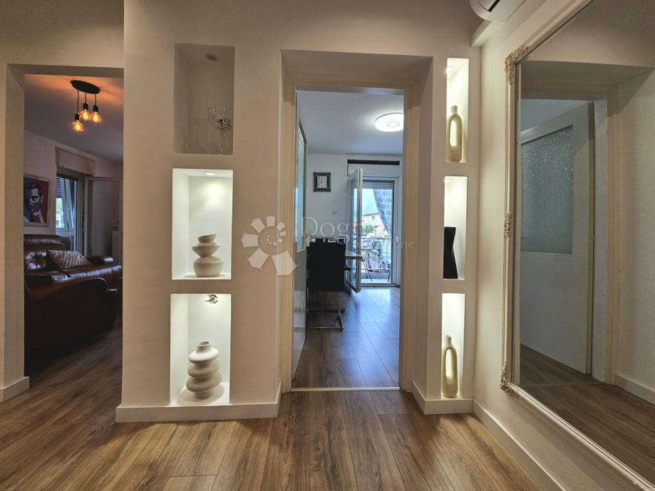Stan je **nedavno u potpunosti adaptiran** – zamijenjena je vanjska stolarija, iznivelirani su podovi i zidovi, hodnik je dobio spušteni strop s modernim rasvjetnim detaljima, a sve prostorije uređene su s pažnjom i ukusom.