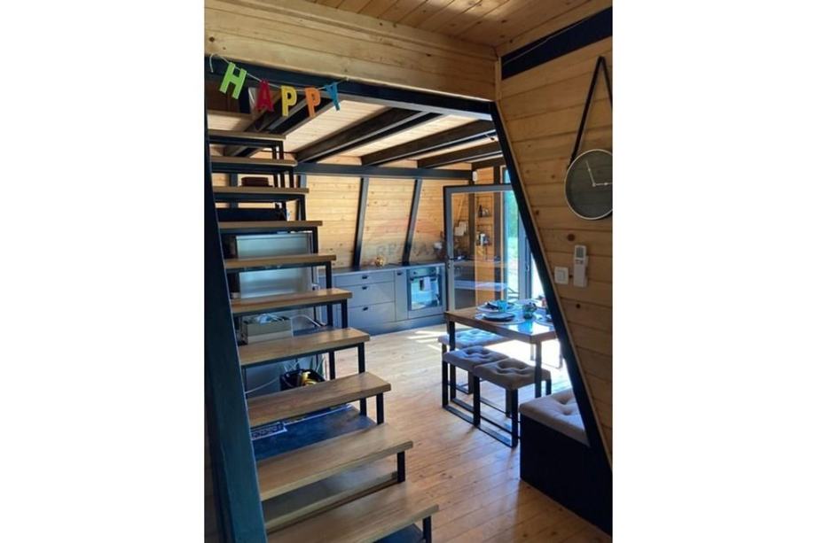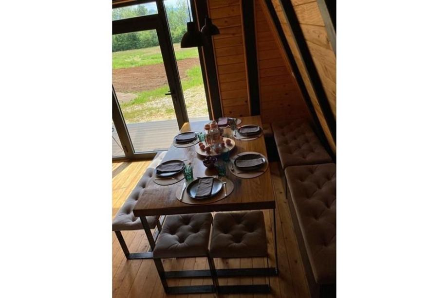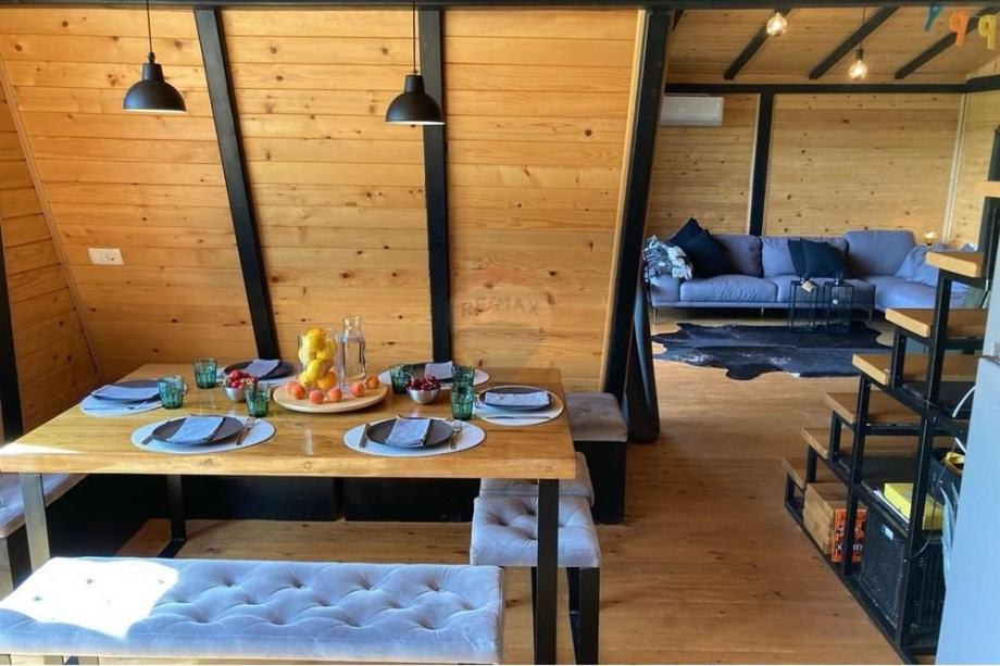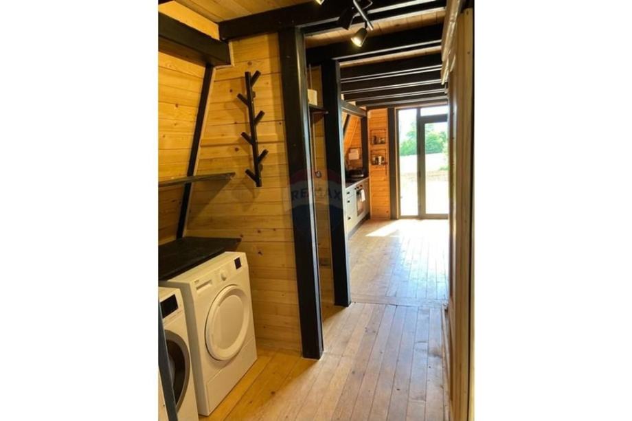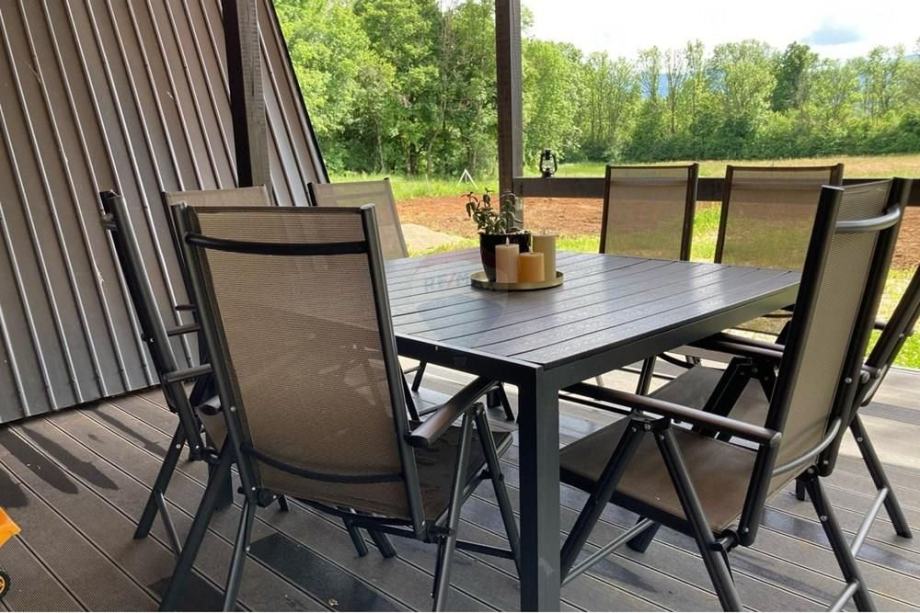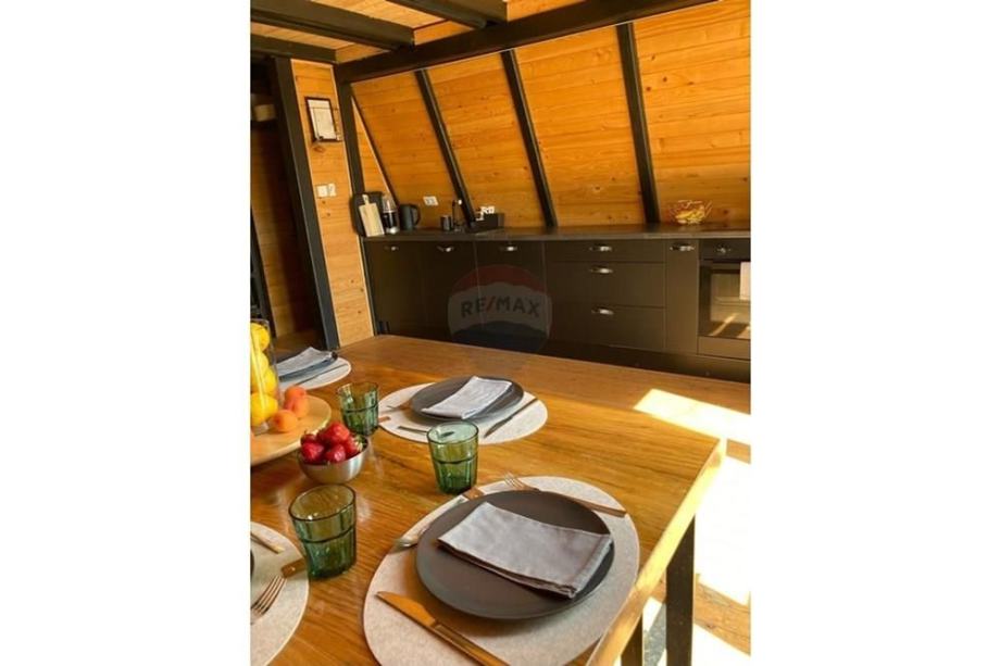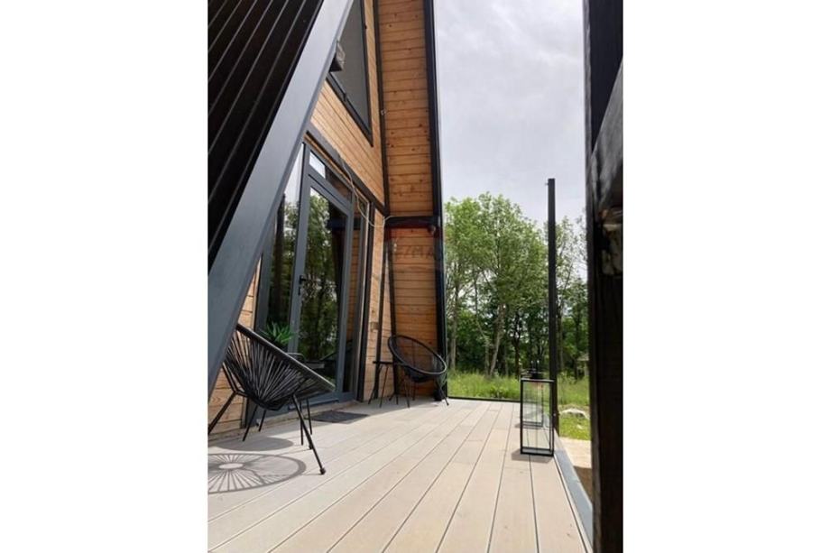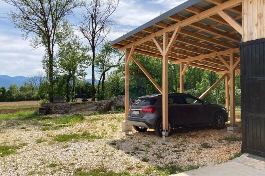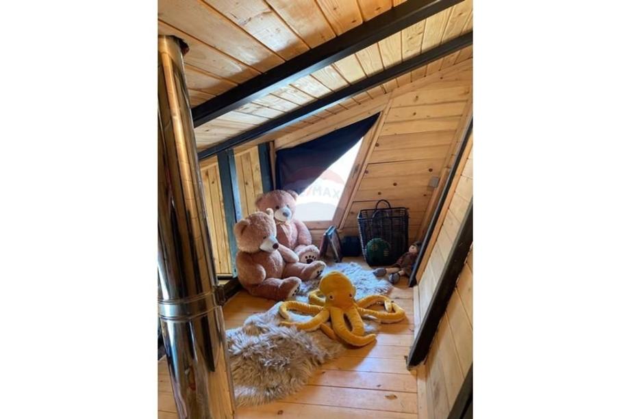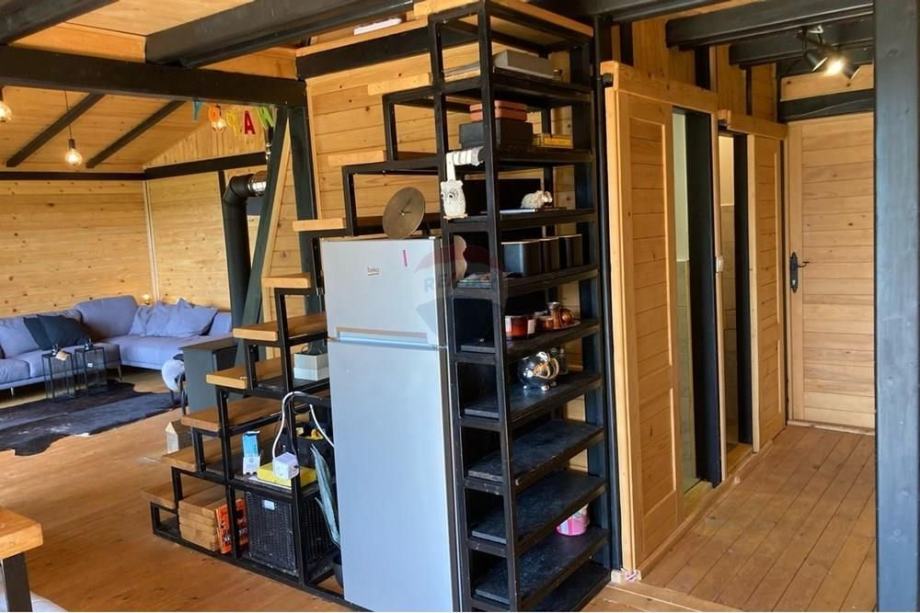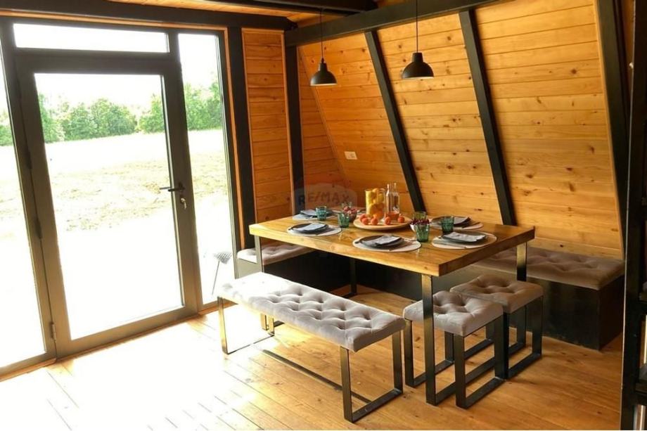 Prodaje se A frame kuća koja se nalazi na čestici veličine 17465 m2. Kuća je legalizirana i ima uporabnu dozvolu. Uz kuću je 2000 m2 čestice također građevinsko zemljište. Kuća je izrađena od hrastovih greda sa pravim temeljima te izolirana sa 20 cm kamene vune. Kuća je kompletno namještena a sastoji se od kuhinje, blagovaonice, 2 Wc-a + kupaonice, galerije sa igraonicom i dvije spavaće sobe na katu. Ispred kuće se nalazi garaža i natkriveni parking za 2 vozila. Grijanje je na drva + klima uređaj. Kuća je opremljena kamerama, internetom (wifi).