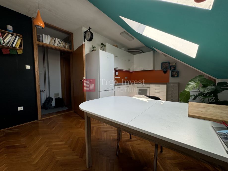 Stan se sastoji od ulaznog hodnika, kuhinje s blagovaonicom, spavaće sobe i kupaonice. S njim je izravno povezana dodatna prostorija površine cca 20 m², pogodna za uređenje kao radna soba, prostor za hobije ili spremište. Uz to, stanu pripada i zasebno spremište u potkrovlju površine cca 4 m².