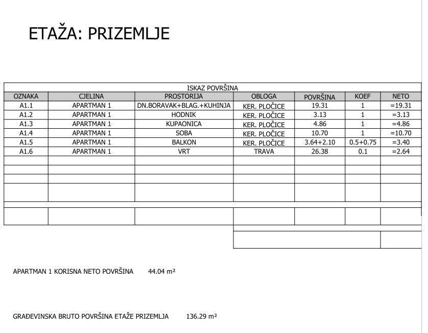 Površina interijera: 38 m² + terasa i privatni vrt od 32 m²