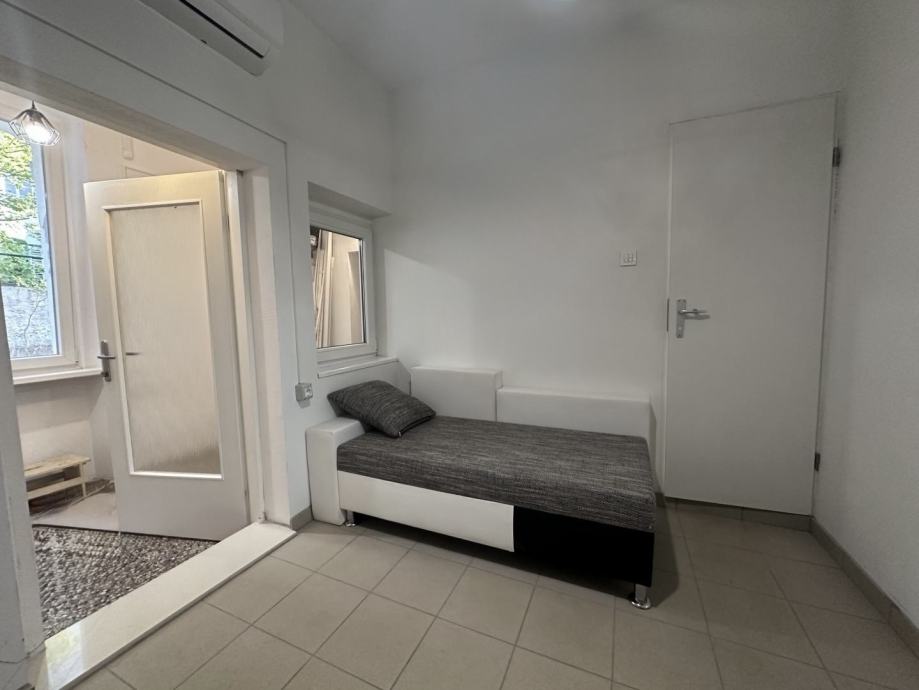 Nekretnina je koncepirana da može biti jedan veliki trosobni stan ali s obzirom na svoju lokaciju idealna je za turistički najam,što je već jedan stan useljiv i sastoji se od zajedničkog hodnika,kuhinje s blagovaonicom,jedne spavaće sobe i kupaonice.