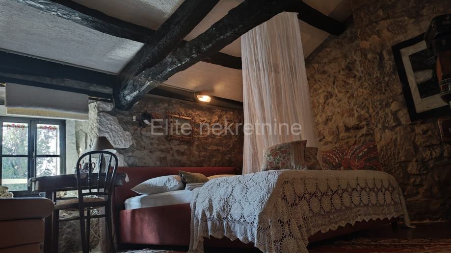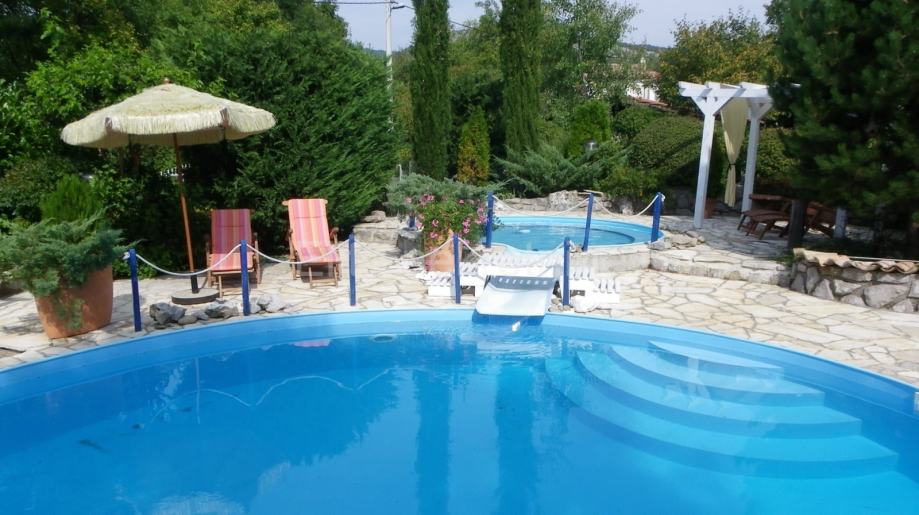 Smještena u malom Istarskom selu Ročko polje, ova šarmantna kuća za odmor pruža savršen spoj tradicije i udobnosti. Okućnica od 1,177m2, obuhvaća dvije kamene kuće ukupne površine 160m2, uređene u rustikalnom stilu sa modernim elementima. Prostrani vrt sa mediteranskim biljem, prirodni bazen u kamenu te kružni bazen promjera 7 metara sa manjim jakuzzi bazenom promjera 3,5 metara čine ovu nekretninu posebnom. Sve je projektirano prema feng shuiju, stvarajući harmoničan prostor za stanare.