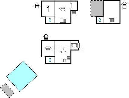 U prizemlju se nalazi dnevni boravak s kuhinjom i blagovaonicom, kupaonica te višenamjenska prostorija koja se može koristiti kao spavaća soba, radni prostor, igraonica i slično. Na prvom katu smješteni su balkon, drugi dnevni boravak i spavaća soba s vlastitom kupaonicom. Na drugom katu nalazi se još jedna spavaća soba s kupaonicom i izlazom na terasu, s koje se pruža pogled na vrt i bazen, kao i okolni krajolik.