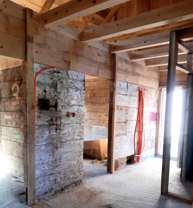 Kuća je nedavno prošla značajnu vanjsku obnovu. Postavljen je potpuno novi krov, izrađena je nova fasada te su ugrađeni novi PVC prozori i vrata, čime je objekt zaštićen i spreman za završne radove u interijeru. Unutrašnjost je u roh bau stanju, što budućim vlasnicima pruža mogućnost uređenja prema vlastitim željama i potrebama. Poseban dojam ostavljaju nove, vidljive drvene grede koje prostoru daju toplinu i rustikalni šarm, a ujedno su savršena osnova za moderno open space potkrovlje.