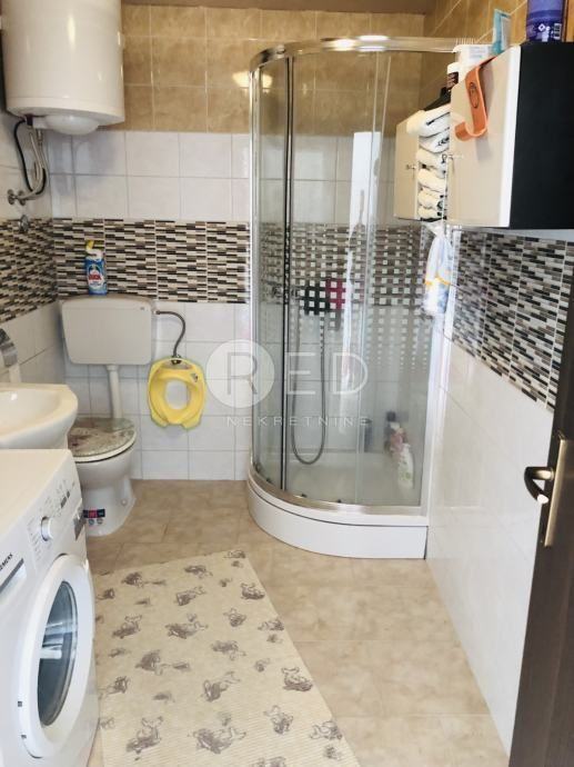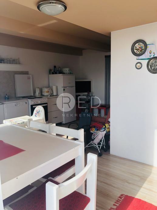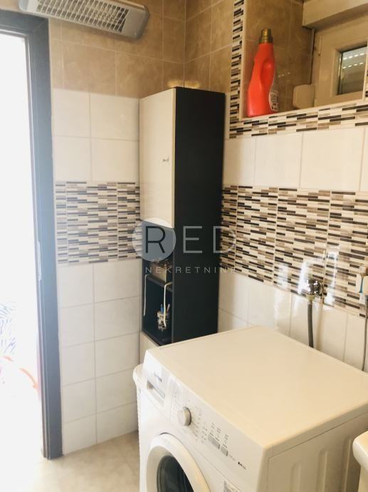 U prizemlju se nalazi velika spavaća soba sa velikom kupaonicom, opremljenom tuš kabinom i perilicom veša. Vanjske stepenice vode na prvi kat, gdje je smještena kuhinja sa blagavaonicom i dnevnim boravkom. Tu se nalazi i druga spavaća soba. Kuhinja je opremljena svim aparatima, peć, perilica posuđa, hladnjak, a dnevni broavak televizorom, klimom.