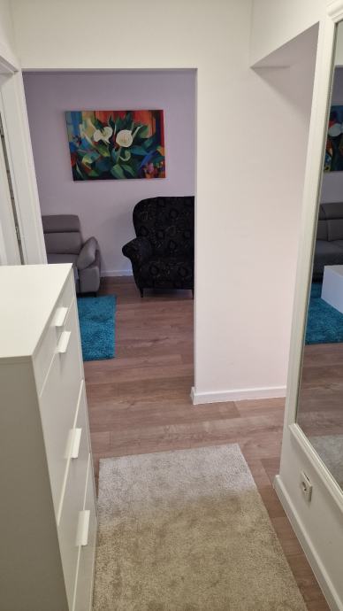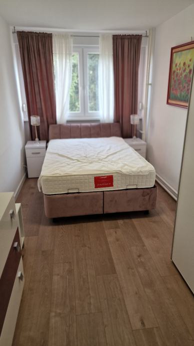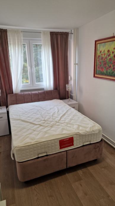 SAMOBOR - Južno Naselje! Iznajmljuje se novo adaptirani i potpuno namješteni dvosobni stan, 52m2, smješten na 1. katu dobro održavane zgrade. Stan je sa novom vanjskom PVC stolarijom (rolete i komarnici), protuprovalnim vratima, novim namještajem i novom kupaonicom.. U stanu se nalazi klima uređaj, perilica suđa, perilica rublja i zasebno sušilica rublja. U neposrednoj blizini se nalazi više parkova (30m), trgovina (30m), novo dječje igralište (100m) osnovna škola i vrtić (120m) , trgovački centar (200m) centar Samobora je udaljen 700m. Stan se iznajmljuje isključivo na duže vrijeme uz obveznu ovjeru ugovora o najmu (solemnizacija).