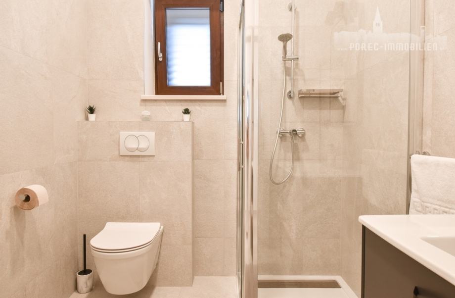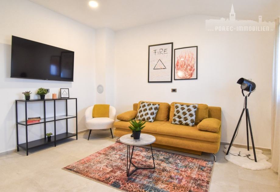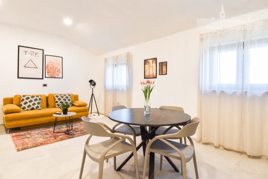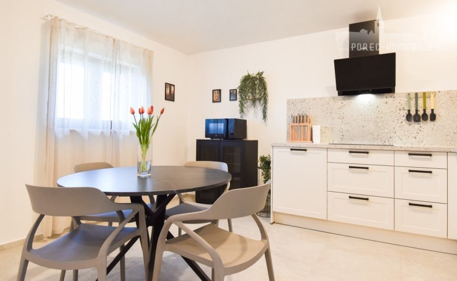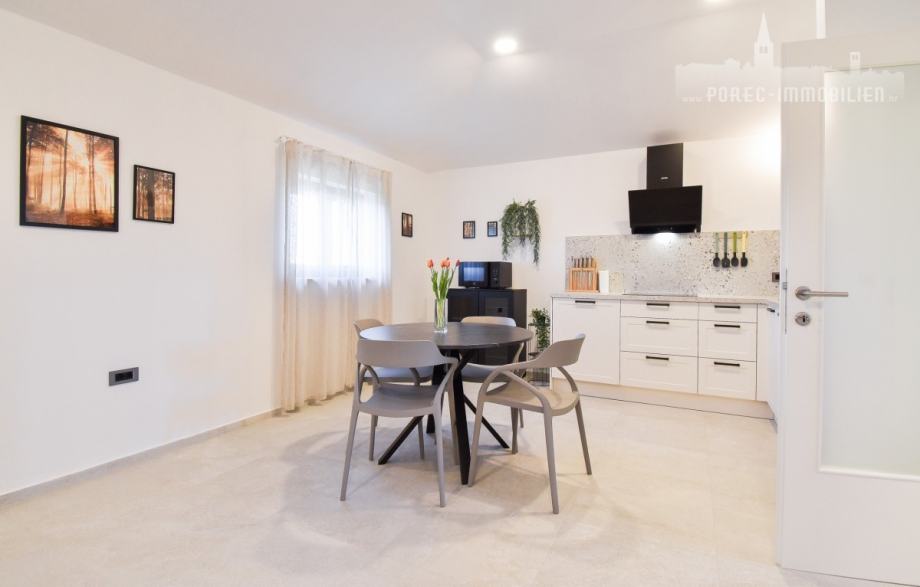 U lijepom i pitoresknom istarskom gradiću, samo 3 km od mora, na prodaji je potpuno namješten stan na drugom katu manje zgrade.