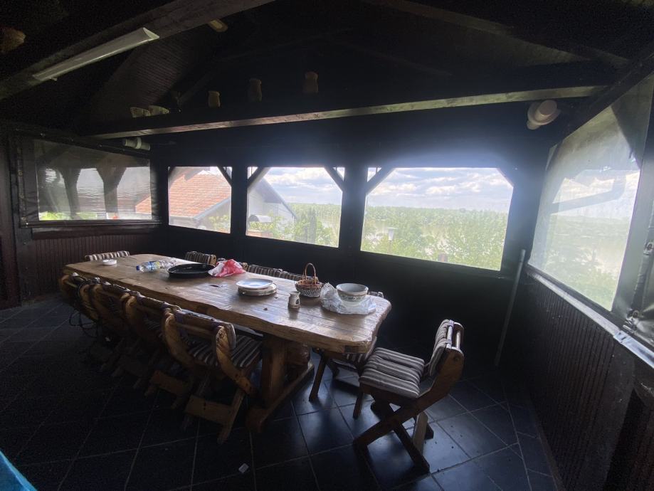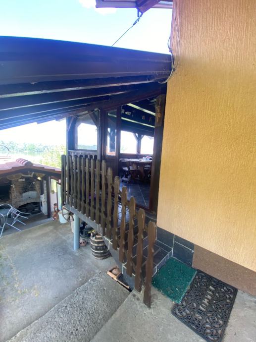 Prodajemo kompletno uređenu vikendicu u Aljmašu drugi red od Dunava (nikada poplavljena). Vikendica se sastoji od suterena 55 m2 u kojem je kupaonica i rashladna komora, prizemlja 35 m2 u kojem je dnevni boravak sa kuhinjom i blagavaonicom te velikom terasom od 20 m2, potkrovlja 35 m2 koje se sastoji od hodnika 2 sobe i kupaonice. Na vikendici postoji struja, voda i plin pa je i centralno grijanje na plin.
