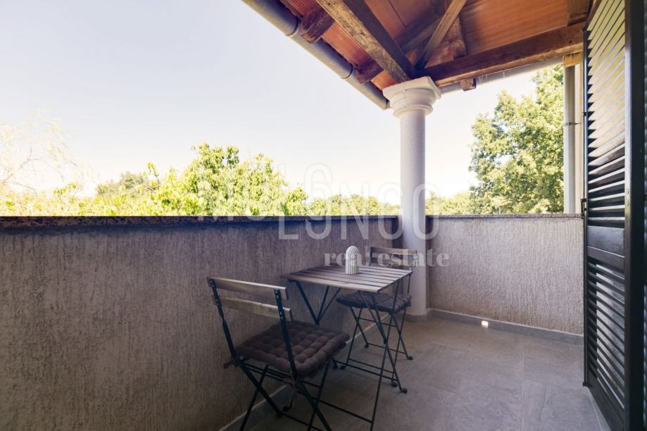 Prodaje se prekrasna moderno uređena Kuća s bazenom i pogledom na more. Kuća je smještena na mirnoj lokaciji i okružena prirodom i zelenilom. Udaljena je 5 km od mora i grada Poreča, 50 km od graničnog prijelaza i aerodroma ( Portorož, Pula, ).