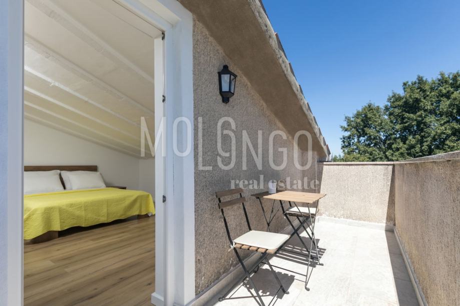 Na samom potkrovlju nalaze se još dnevni boravak s blagovaonicom i kuhinjom, dvije spavaće sobe i kupatilo.