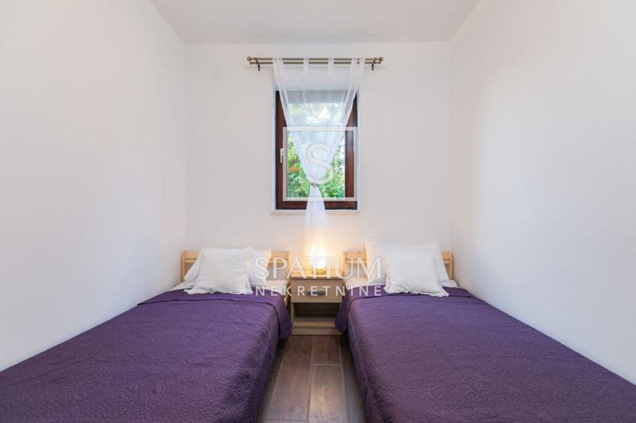 Kuća ima i tri vlastita parkirna mjesta, te se prodaje kompletno namještena i uređena.