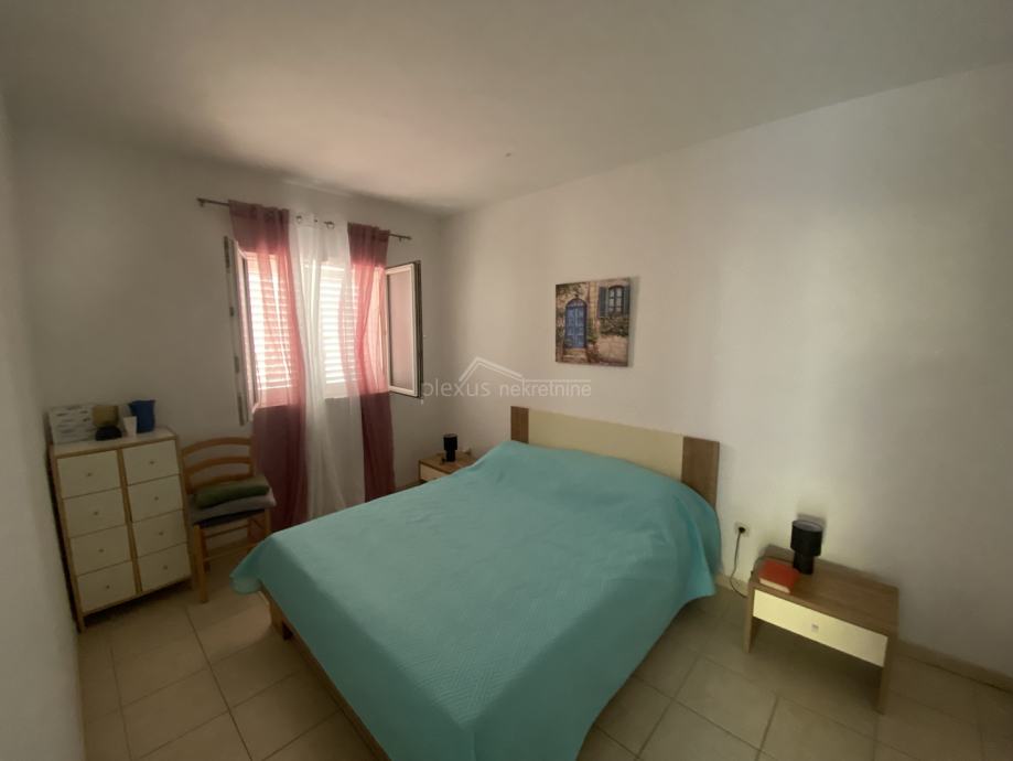 U prizemlju se nalazi spremište i garaža ukupne površine 15 0m2. Na svakom katu se nalaze po dva apartmana (ukupno 4) iz kojih se proteže lijepi pogled na more.