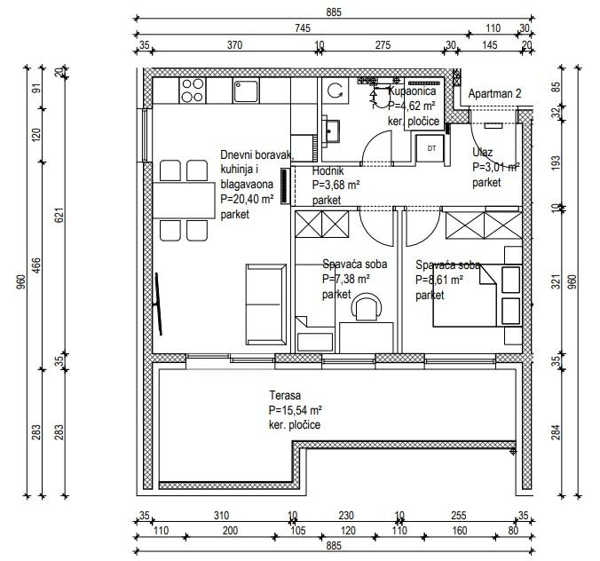 Uz stan je obavezna kupnja vanjskog ili garažnog parkirnog mjesta.