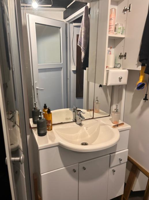 Konoba ima prostor za kuhanje , stol za ručavanje , manji ležaj , kupaonu sa tušem , toalet i umivaonik ( novo postavljeno pločice i kupaonska oprema)