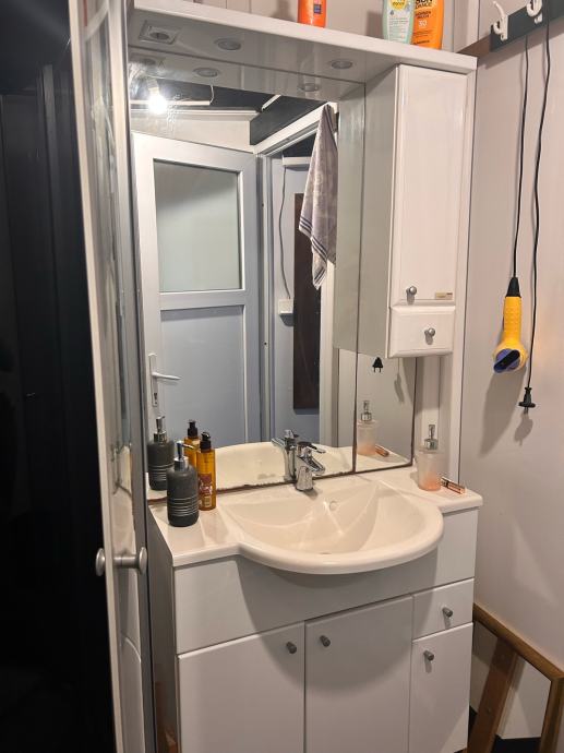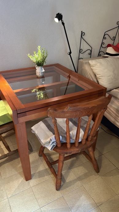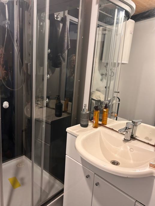 Apartman je opremljen sa 2 ležaja , ormarima, stol , stolice , manji ležaj .Kupaona sa tušem , umivaonik i toalet.